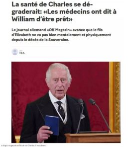Ανησυχία στο Παλάτι καθώς ο βασιλιάς Κάρολος φέρεται να αντιμετωπίζει προβλήματα υγείας σύμφωνα με τη γαλλόφωνη Le Matin.  Μάλιστα όπως αναφέρεται στο ρεπορτάζ ο βασιλιάς Κάρολος έχει καταρρεύσει ψυχικά και σωματικά μετά τον θάνατο της μητέρας του βασίλισσας Ελισάβετ Β’.