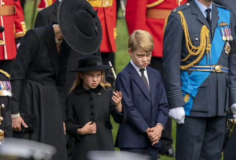 Κάπως έτσι προέκυψε μια χαριτωμένη στιγμή στην κατά τα άλλα θλιβερή, για τη Βρετανία, ημέρα της κηδείας της βασίλισσας Ελισάβετ, καθώς ο φακός συνέλαβε το μεσαίο παιδί του πρίγκιπα William και της Kate Middleton, ενώ παρακολουθούσε με το μεγαλύτερο αδερφό της την πομπή με το φέρετρο, να του λέει: «Πρέπει να υποκλιθείς». Ο πρίγκιπας George φαίνεται πως την παρακολουθεί με προσοχή, καθώς ακολουθεί αμέσως την οδηγία της.