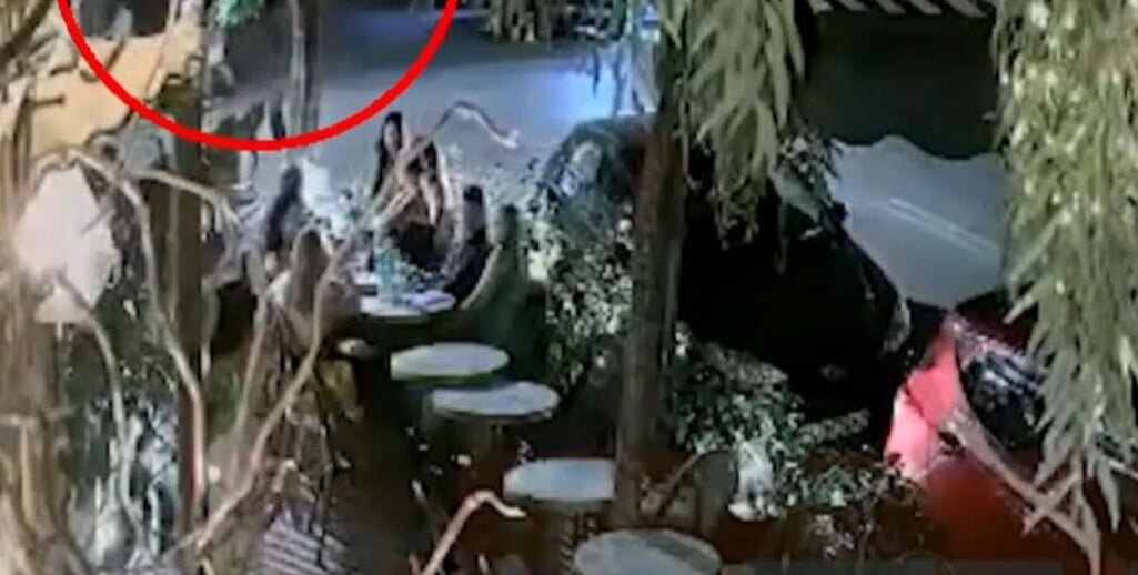 Αναλυτικότερα, το βίντεο απαθανατίζει την πορεία του τζιπ στον κατηφορικό δρόμο, την ώρα που πέφτει πάνω στα κολωνάκια και το δέντρο, πριν καταλήξει στα τραπέζια του εστιατορίου.